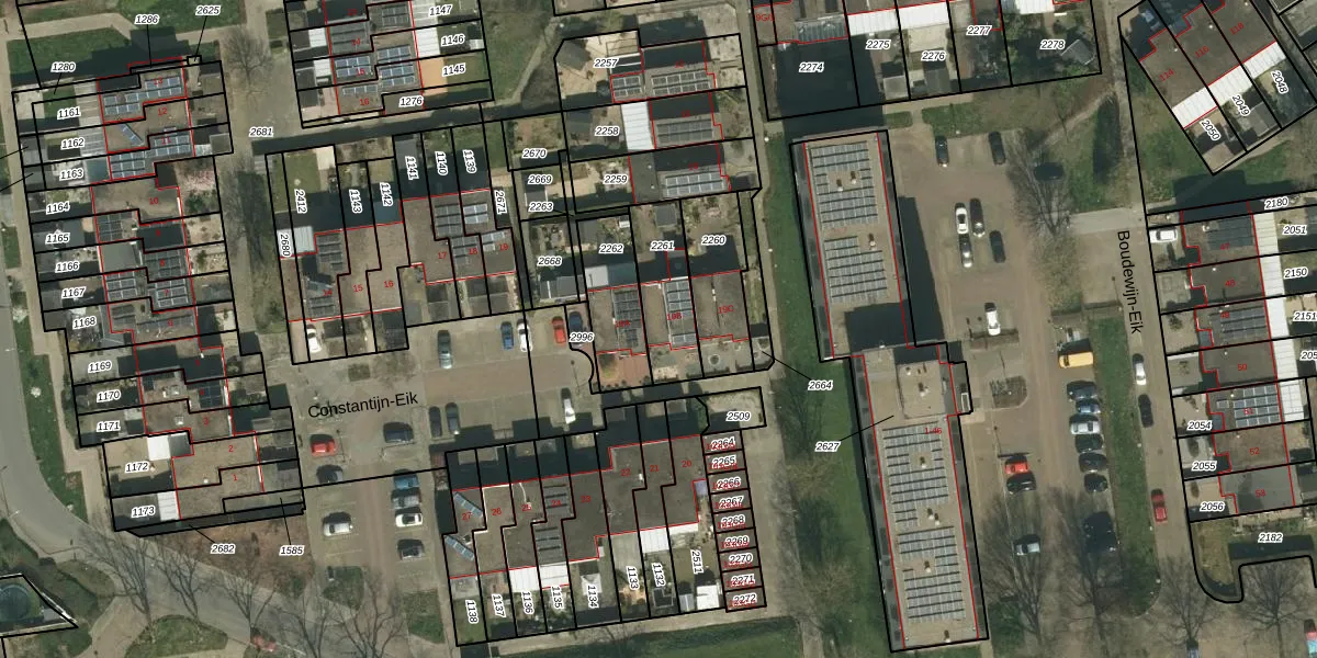 Constantijn-Eik 19-B is gelegen op kadastraal perceel KRD00K2261. Deze kadastrale aanduiding is uniek en wordt gebruikt door het Kadaster om eigendomsrechten en andere zakelijke rechten vast te leggen. Het perceel maakt onderdeel uit van de kadastrale gemeente Kerkrade.