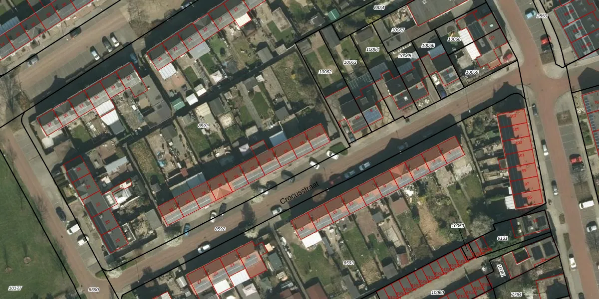 Crocusstraat 16 is gelegen op kadastraal perceel KRD00D8591. Deze kadastrale aanduiding is uniek en wordt gebruikt door het Kadaster om eigendomsrechten en andere zakelijke rechten vast te leggen. Het perceel maakt onderdeel uit van de kadastrale gemeente Kerkrade.