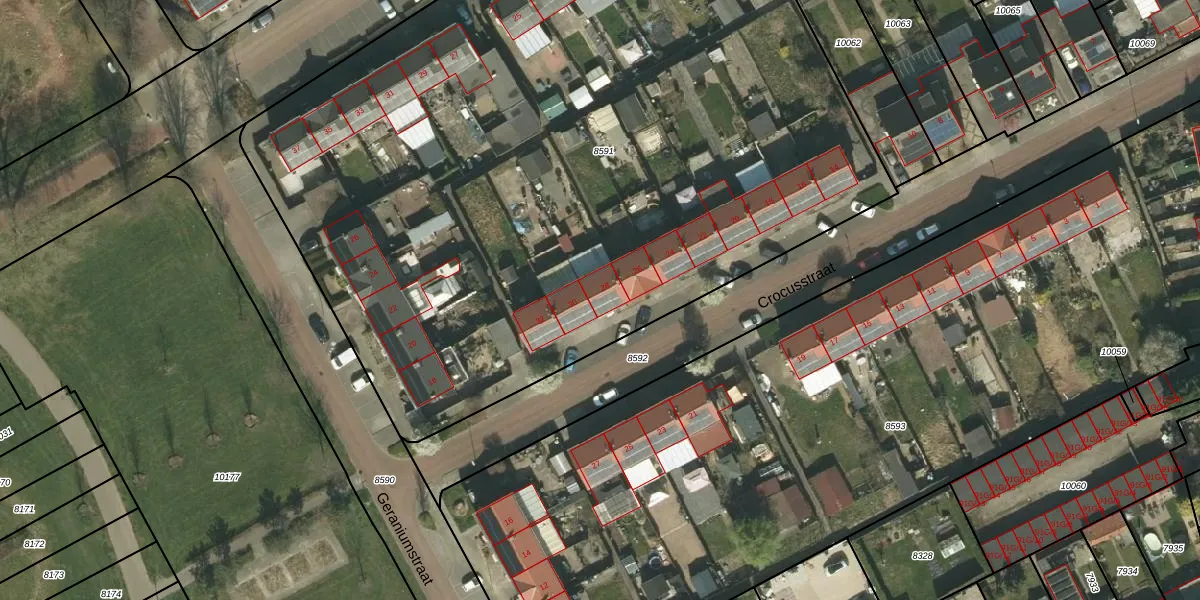 Crocusstraat 28 is gelegen op kadastraal perceel KRD00D8591. Deze kadastrale aanduiding is uniek en wordt gebruikt door het Kadaster om eigendomsrechten en andere zakelijke rechten vast te leggen. Het perceel maakt onderdeel uit van de kadastrale gemeente Kerkrade.