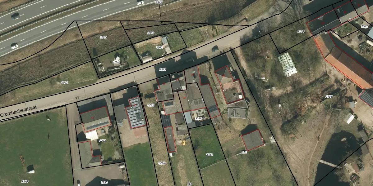 Crombacherstraat 22 is gelegen op kadastraal perceel KRD00K3038. Deze kadastrale aanduiding is uniek en wordt gebruikt door het Kadaster om eigendomsrechten en andere zakelijke rechten vast te leggen. Het perceel maakt onderdeel uit van de kadastrale gemeente Kerkrade.