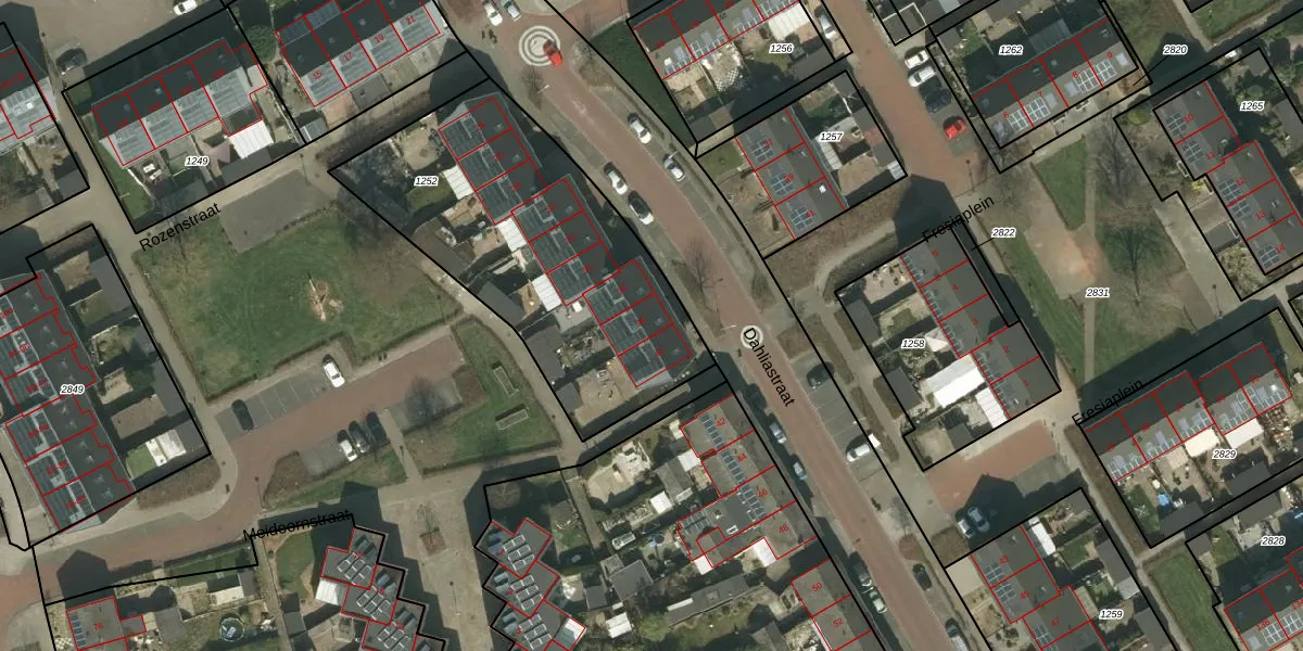 Dahliastraat 38 is gelegen op kadastraal perceel KRD00H1252. Deze kadastrale aanduiding is uniek en wordt gebruikt door het Kadaster om eigendomsrechten en andere zakelijke rechten vast te leggen. Het perceel maakt onderdeel uit van de kadastrale gemeente Kerkrade.