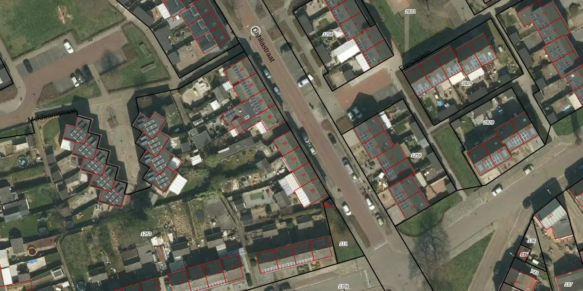 Het perceel waarop Dahliastraat 50 staat heeft een oppervlakte van 8500 m². Dit is een zeer groot perceel. De perceeloppervlakte wordt geregistreerd door het Kadaster. Gedetailleerde informatie over de maten van dit perceel kunt u vinden in het rapport Kadastrale kaart met maatvoering van Dahliastraat 50.