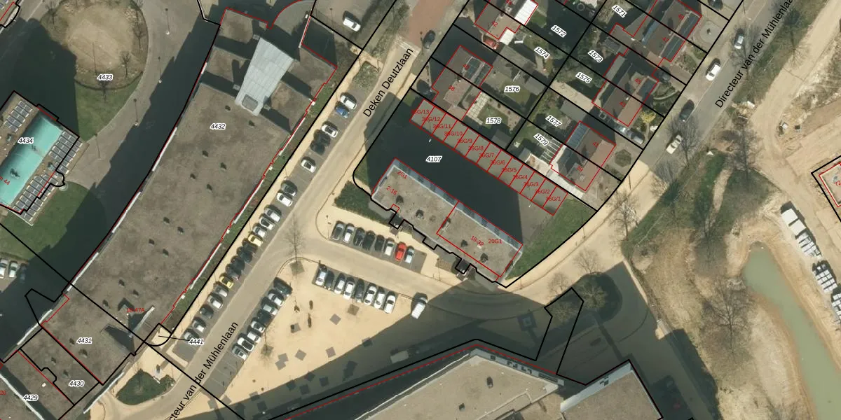 Het perceel waarop Deken Deutzlaan 10 staat heeft een oppervlakte van 1361 m². Dit is een zeer groot perceel. De perceeloppervlakte wordt geregistreerd door het Kadaster. Gedetailleerde informatie over de maten van dit perceel kunt u vinden in het rapport Kadastrale kaart met maatvoering van Deken Deutzlaan 10.