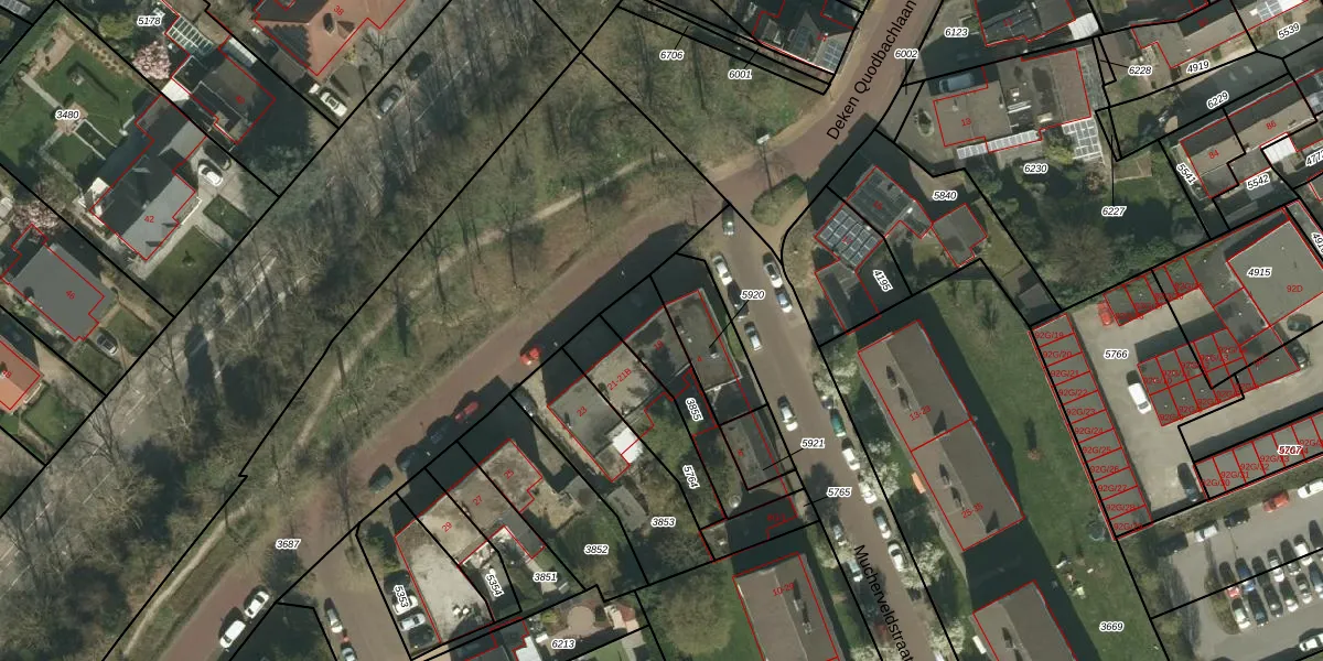 Deken Quodbachlaan 19 is gelegen op kadastraal perceel KRD00E3855. Deze kadastrale aanduiding is uniek en wordt gebruikt door het Kadaster om eigendomsrechten en andere zakelijke rechten vast te leggen. Het perceel maakt onderdeel uit van de kadastrale gemeente Kerkrade.