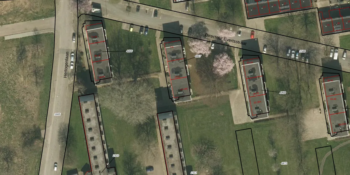 Directeur Evertsstraat 16 is gelegen op kadastraal perceel KRD00G4467. Deze kadastrale aanduiding is uniek en wordt gebruikt door het Kadaster om eigendomsrechten en andere zakelijke rechten vast te leggen. Het perceel maakt onderdeel uit van de kadastrale gemeente Kerkrade.