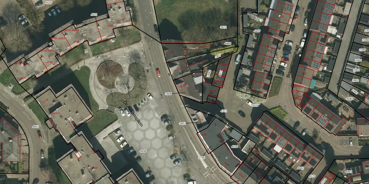 Dr.Ackensplein 38 is gelegen op kadastraal perceel KRD00F1408. Deze kadastrale aanduiding is uniek en wordt gebruikt door het Kadaster om eigendomsrechten en andere zakelijke rechten vast te leggen. Het perceel maakt onderdeel uit van de kadastrale gemeente Kerkrade.