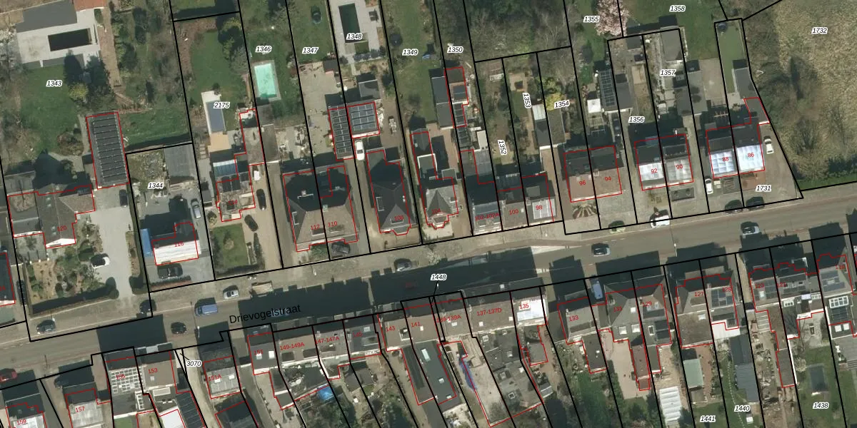 Het perceel waarop Drievogelstraat 104 staat heeft een oppervlakte van 965 m². Dit is een groot perceel. De perceeloppervlakte wordt geregistreerd door het Kadaster. Gedetailleerde informatie over de maten van dit perceel kunt u vinden in het rapport Kadastrale kaart met maatvoering van Drievogelstraat 104.