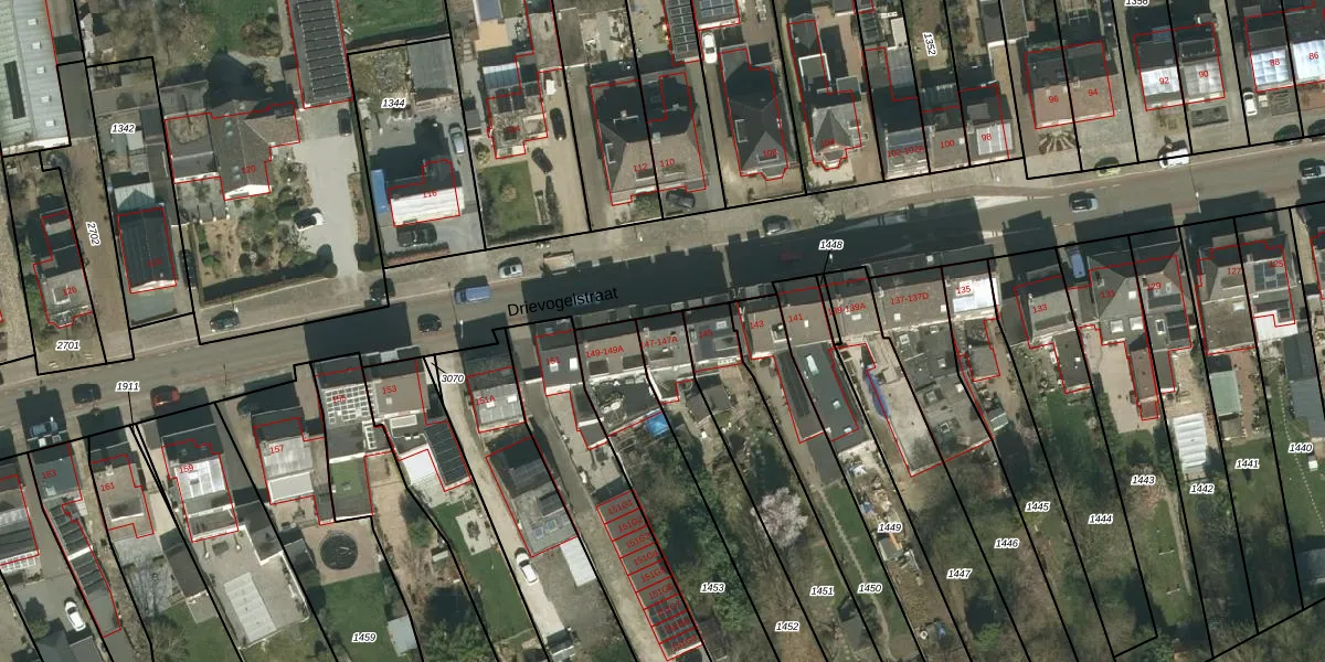 Het perceel waarop Drievogelstraat 147 staat heeft een oppervlakte van 595 m². Dit is een groot perceel. De perceeloppervlakte wordt geregistreerd door het Kadaster. Gedetailleerde informatie over de maten van dit perceel kunt u vinden in het rapport Kadastrale kaart met maatvoering van Drievogelstraat 147.