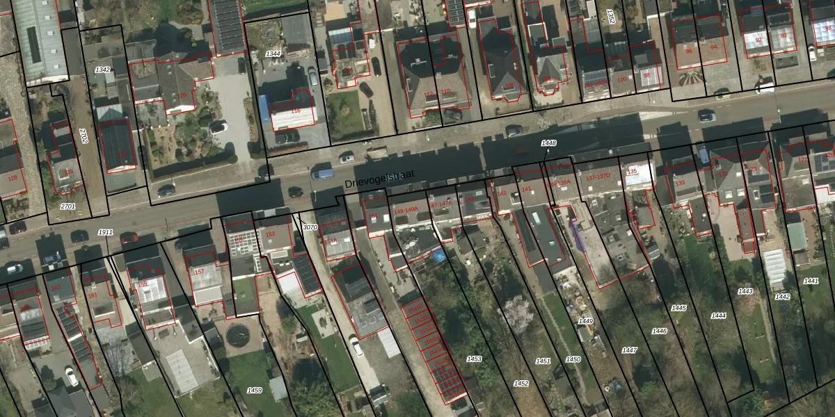 Het perceel waarop Drievogelstraat 149-A staat heeft een oppervlakte van 875 m². Dit is een groot perceel. De perceeloppervlakte wordt geregistreerd door het Kadaster. Gedetailleerde informatie over de maten van dit perceel kunt u vinden in het rapport Kadastrale kaart met maatvoering van Drievogelstraat 149-A.