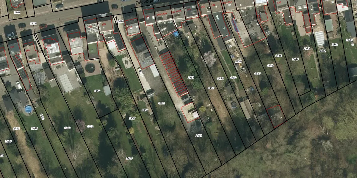 Het perceel waarop Drievogelstraat 151-G-8 staat heeft een oppervlakte van 1015 m². Dit is een zeer groot perceel. De perceeloppervlakte wordt geregistreerd door het Kadaster. Gedetailleerde informatie over de maten van dit perceel kunt u vinden in het rapport Kadastrale kaart met maatvoering van Drievogelstraat 151-G-8.