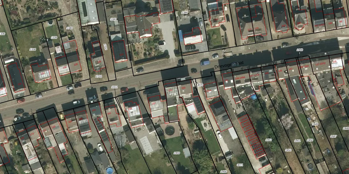 Het perceel waarop Drievogelstraat 155 staat heeft een oppervlakte van 1060 m². Dit is een zeer groot perceel. De perceeloppervlakte wordt geregistreerd door het Kadaster. Gedetailleerde informatie over de maten van dit perceel kunt u vinden in het rapport Kadastrale kaart met maatvoering van Drievogelstraat 155.