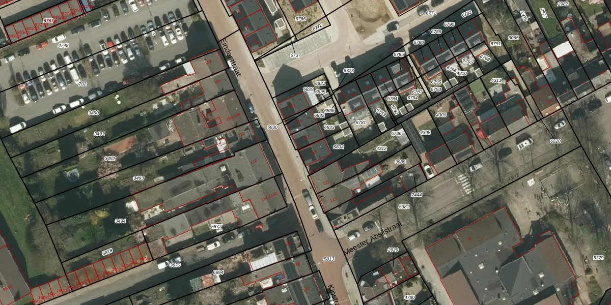 Einderstraat 119 is gelegen op kadastraal perceel KRD00E6834. Deze kadastrale aanduiding is uniek en wordt gebruikt door het Kadaster om eigendomsrechten en andere zakelijke rechten vast te leggen. Het perceel maakt onderdeel uit van de kadastrale gemeente Kerkrade.