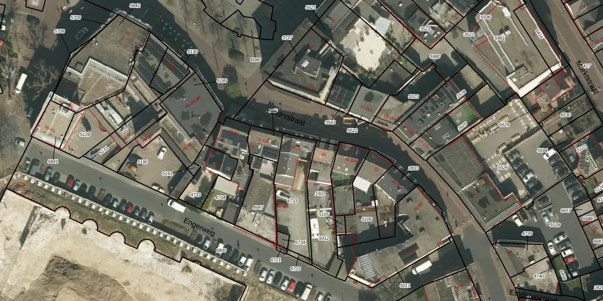 Het perceel waarop Einderstraat 26 staat heeft een oppervlakte van 394 m². Dit is een groot perceel. De perceeloppervlakte wordt geregistreerd door het Kadaster. Gedetailleerde informatie over de maten van dit perceel kunt u vinden in het rapport Kadastrale kaart met maatvoering van Einderstraat 26.