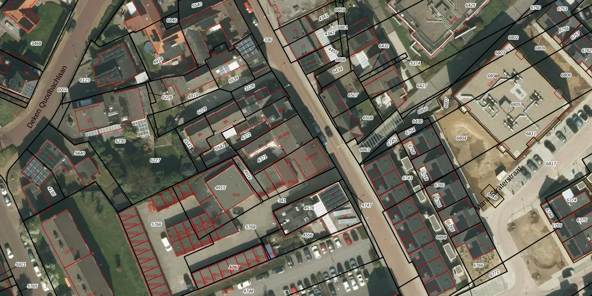 Einderstraat 90 is gelegen op kadastraal perceel KRD00E4771. Deze kadastrale aanduiding is uniek en wordt gebruikt door het Kadaster om eigendomsrechten en andere zakelijke rechten vast te leggen. Het perceel maakt onderdeel uit van de kadastrale gemeente Kerkrade.