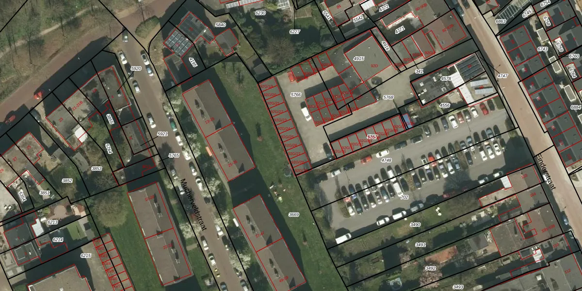 Het perceel waarop Einderstraat 92-G-26 staat heeft een oppervlakte van 665 m². Dit is een groot perceel. De perceeloppervlakte wordt geregistreerd door het Kadaster. Gedetailleerde informatie over de maten van dit perceel kunt u vinden in het rapport Kadastrale kaart met maatvoering van Einderstraat 92-G-26.