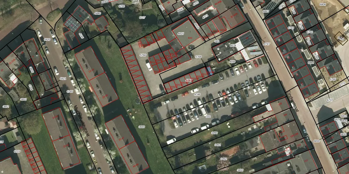 Einderstraat 92-G-31 is gelegen op kadastraal perceel KRD00E5767. Deze kadastrale aanduiding is uniek en wordt gebruikt door het Kadaster om eigendomsrechten en andere zakelijke rechten vast te leggen. Het perceel maakt onderdeel uit van de kadastrale gemeente Kerkrade.