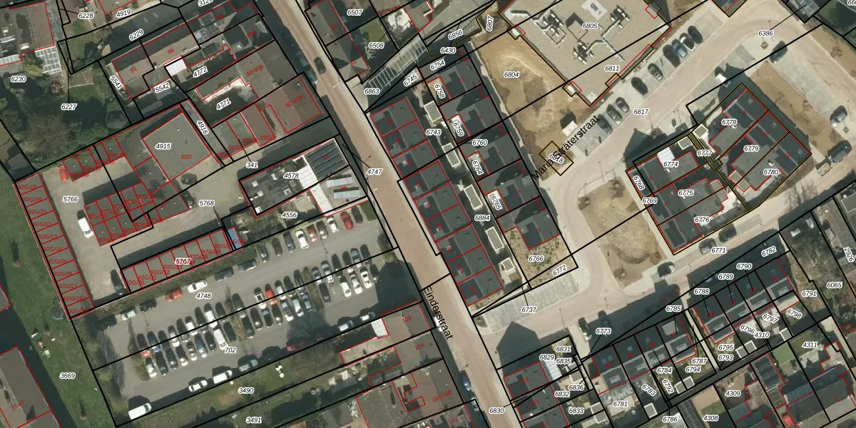 Het perceel waarop Einderstraat 97 staat heeft een oppervlakte van 566 m². Dit is een groot perceel. De perceeloppervlakte wordt geregistreerd door het Kadaster. Gedetailleerde informatie over de maten van dit perceel kunt u vinden in het rapport Kadastrale kaart met maatvoering van Einderstraat 97.