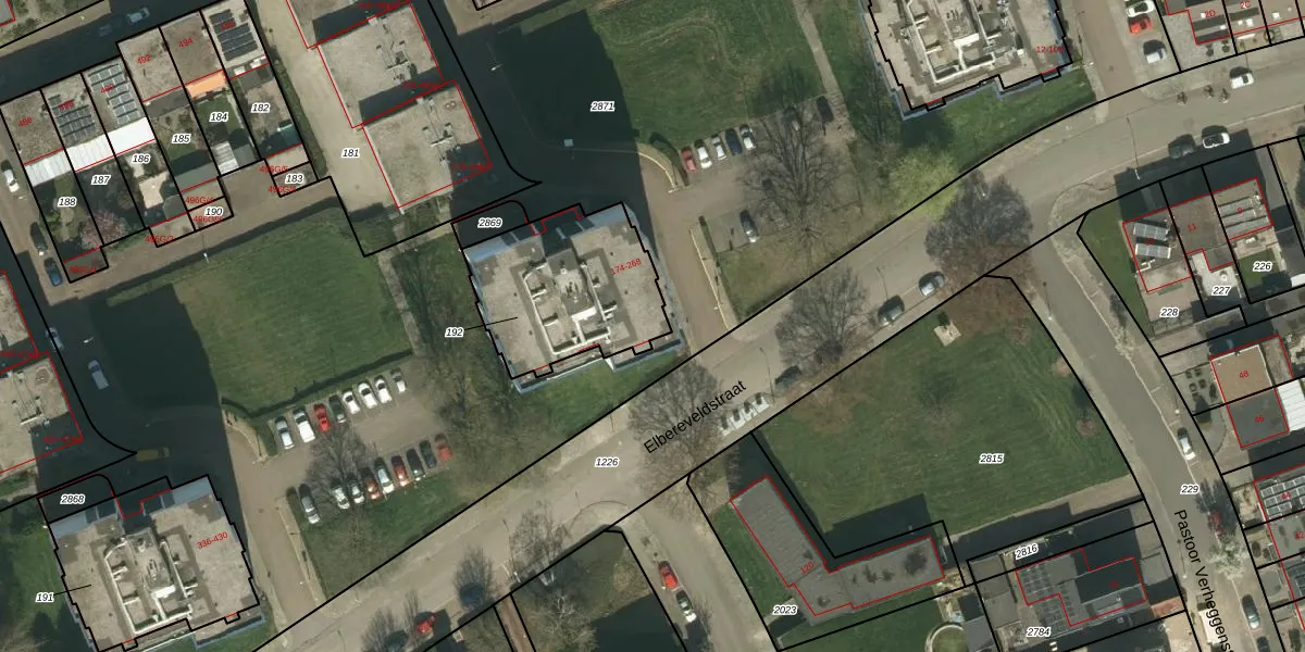Het perceel waarop Elbereveldstraat 182 staat heeft een oppervlakte van 580 m². Dit is een groot perceel. De perceeloppervlakte wordt geregistreerd door het Kadaster. Gedetailleerde informatie over de maten van dit perceel kunt u vinden in het rapport Kadastrale kaart met maatvoering van Elbereveldstraat 182.