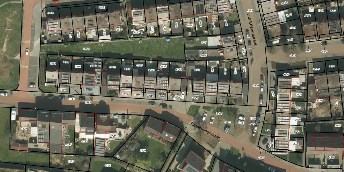 Erensteinerstraat 54 is gelegen op kadastraal perceel KRD00G3741. Deze kadastrale aanduiding is uniek en wordt gebruikt door het Kadaster om eigendomsrechten en andere zakelijke rechten vast te leggen. Het perceel maakt onderdeel uit van de kadastrale gemeente Kerkrade.