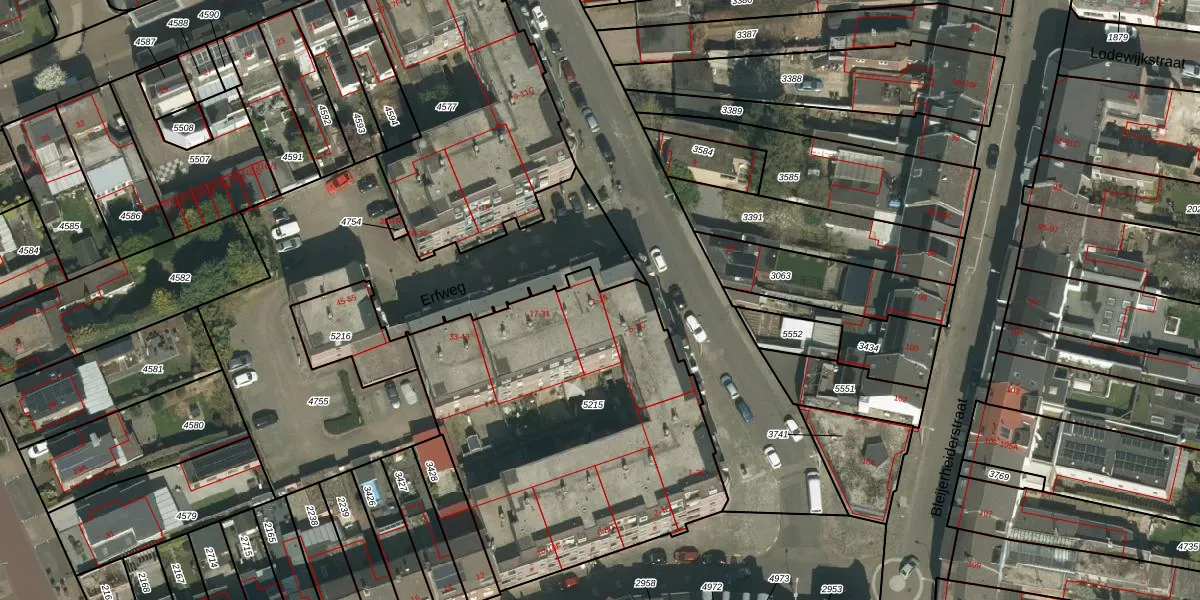 Erfweg 15 is gelegen op kadastraal perceel KRD00F5215. Deze kadastrale aanduiding is uniek en wordt gebruikt door het Kadaster om eigendomsrechten en andere zakelijke rechten vast te leggen. Het perceel maakt onderdeel uit van de kadastrale gemeente Kerkrade.