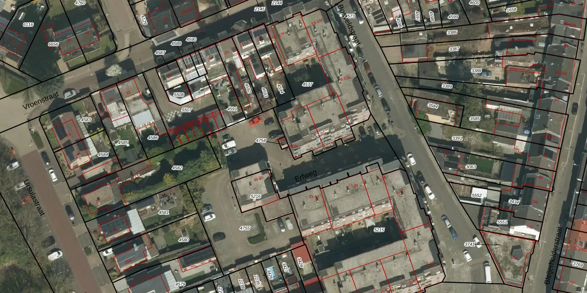 Erfweg 22 is gelegen op kadastraal perceel KRD00F4577. Deze kadastrale aanduiding is uniek en wordt gebruikt door het Kadaster om eigendomsrechten en andere zakelijke rechten vast te leggen. Het perceel maakt onderdeel uit van de kadastrale gemeente Kerkrade.