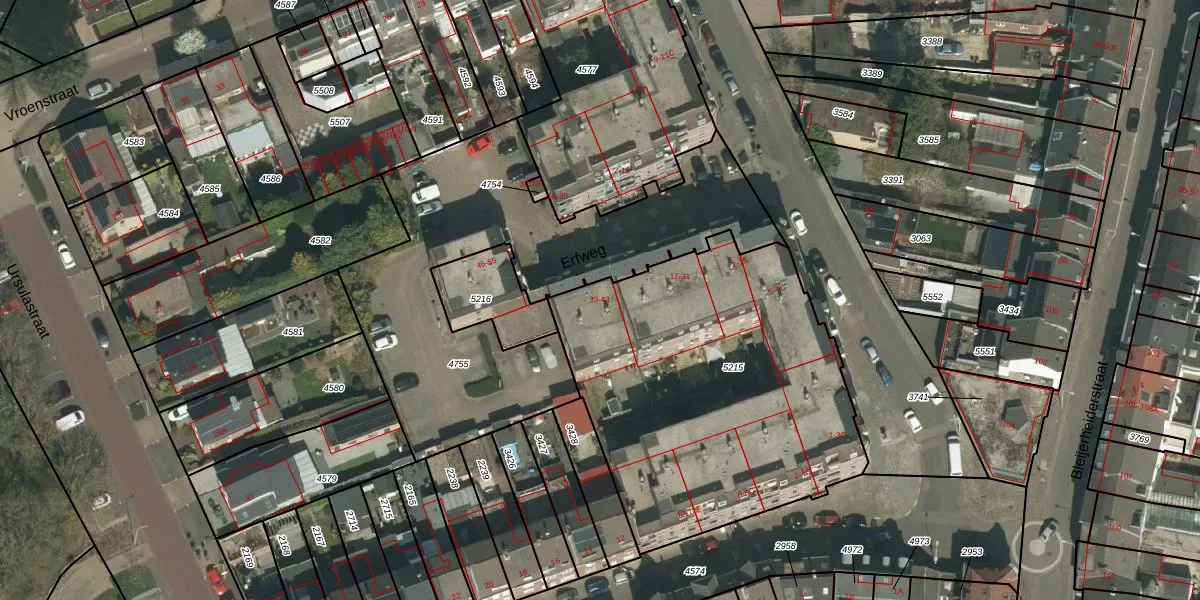 Erfweg 39 is gelegen op kadastraal perceel KRD00F5215. Deze kadastrale aanduiding is uniek en wordt gebruikt door het Kadaster om eigendomsrechten en andere zakelijke rechten vast te leggen. Het perceel maakt onderdeel uit van de kadastrale gemeente Kerkrade.