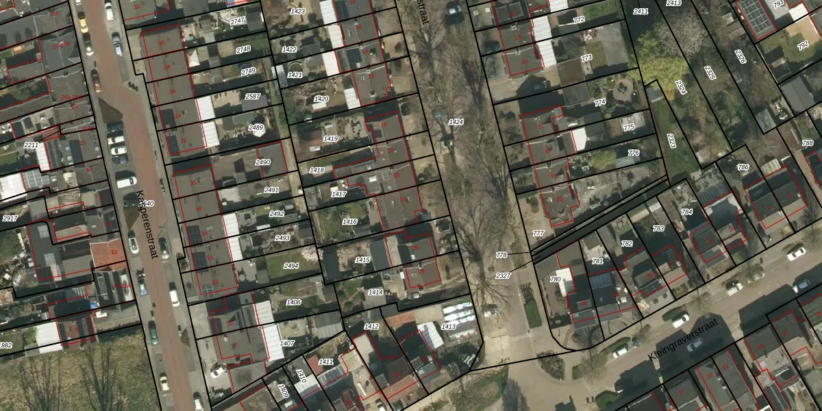 Ericastraat 24 is gelegen op kadastraal perceel KRD00H1416. Deze kadastrale aanduiding is uniek en wordt gebruikt door het Kadaster om eigendomsrechten en andere zakelijke rechten vast te leggen. Het perceel maakt onderdeel uit van de kadastrale gemeente Kerkrade.