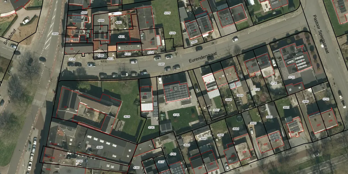 Eurenderstraat 13 is gelegen op kadastraal perceel KRD00A3741. Deze kadastrale aanduiding is uniek en wordt gebruikt door het Kadaster om eigendomsrechten en andere zakelijke rechten vast te leggen. Het perceel maakt onderdeel uit van de kadastrale gemeente Kerkrade.