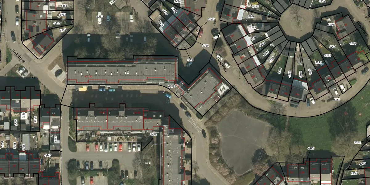 Feldbiss 105 is gelegen op kadastraal perceel KRD00E5245. Deze kadastrale aanduiding is uniek en wordt gebruikt door het Kadaster om eigendomsrechten en andere zakelijke rechten vast te leggen. Het perceel maakt onderdeel uit van de kadastrale gemeente Kerkrade.