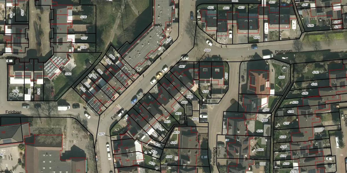 Feldbiss 143-A is gelegen op kadastraal perceel KRD00F4469. Deze kadastrale aanduiding is uniek en wordt gebruikt door het Kadaster om eigendomsrechten en andere zakelijke rechten vast te leggen. Het perceel maakt onderdeel uit van de kadastrale gemeente Kerkrade.