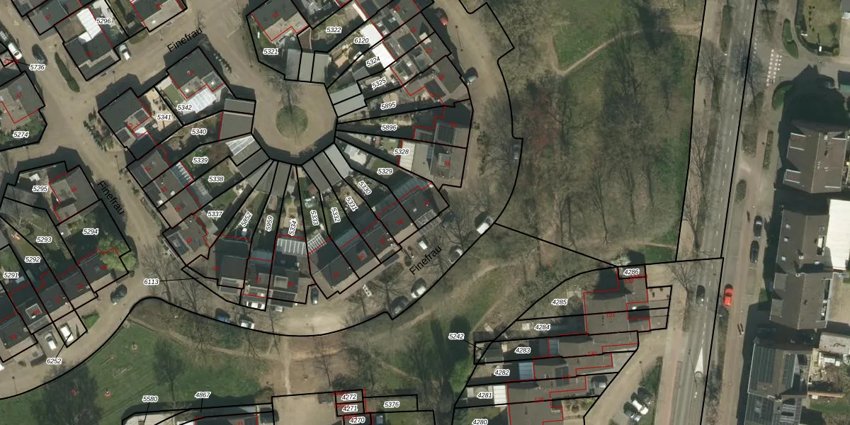 Finefrau 87 is gelegen op kadastraal perceel KRD00E5329. Deze kadastrale aanduiding is uniek en wordt gebruikt door het Kadaster om eigendomsrechten en andere zakelijke rechten vast te leggen. Het perceel maakt onderdeel uit van de kadastrale gemeente Kerkrade.