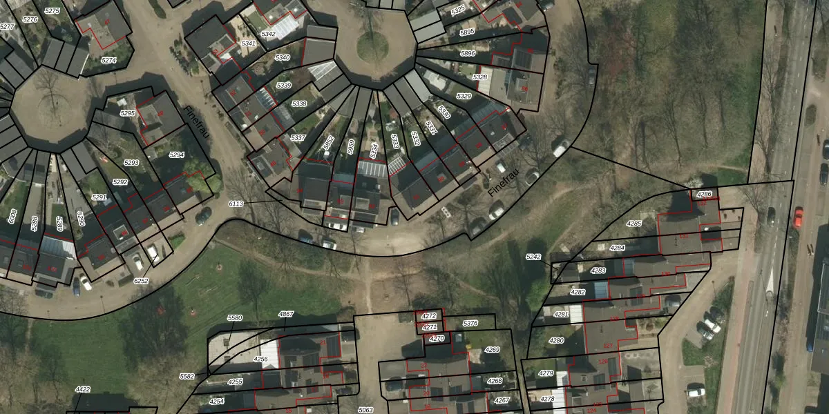 Het perceel waarop Finefrau 91 staat heeft een oppervlakte van 190 m². Dit is een middelgroot perceel. De perceeloppervlakte wordt geregistreerd door het Kadaster. Gedetailleerde informatie over de maten van dit perceel kunt u vinden in het rapport Kadastrale kaart met maatvoering van Finefrau 91.