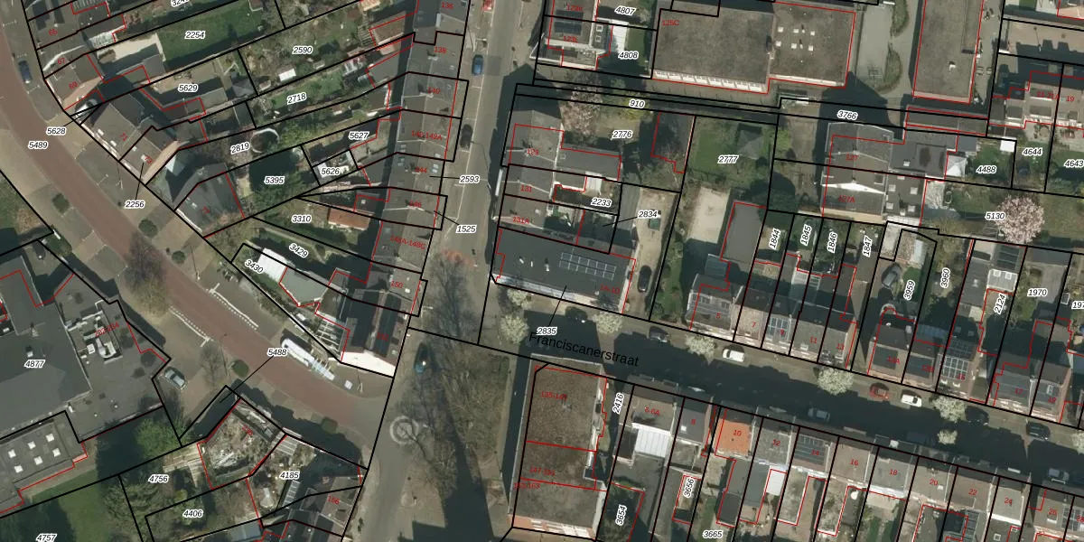 Het perceel waarop Franciscanerstraat 1-A staat heeft een oppervlakte van 460 m². Dit is een groot perceel. De perceeloppervlakte wordt geregistreerd door het Kadaster. Gedetailleerde informatie over de maten van dit perceel kunt u vinden in het rapport Kadastrale kaart met maatvoering van Franciscanerstraat 1-A.