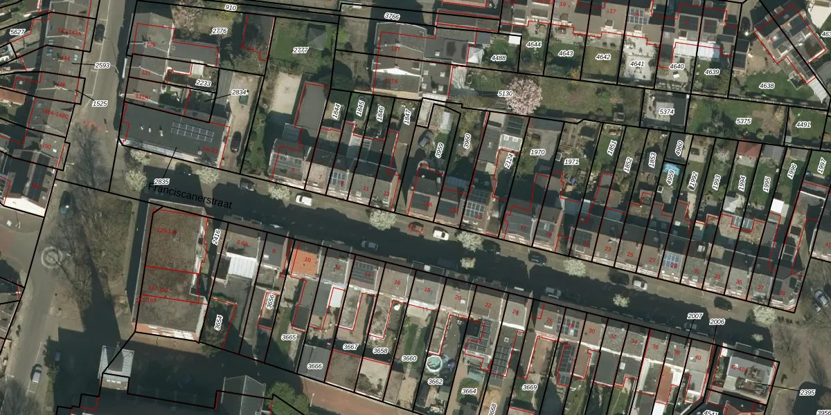 Het perceel waarop Franciscanerstraat 13-A staat heeft een oppervlakte van 250 m². Dit is een middelgroot perceel. De perceeloppervlakte wordt geregistreerd door het Kadaster. Gedetailleerde informatie over de maten van dit perceel kunt u vinden in het rapport Kadastrale kaart met maatvoering van Franciscanerstraat 13-A.
