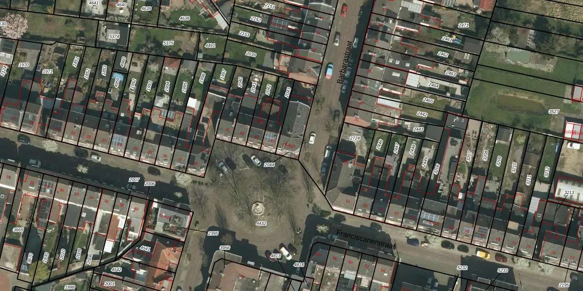 Franciscanerstraat 49-B is gelegen op kadastraal perceel KRD00F2044. Deze kadastrale aanduiding is uniek en wordt gebruikt door het Kadaster om eigendomsrechten en andere zakelijke rechten vast te leggen. Het perceel maakt onderdeel uit van de kadastrale gemeente Kerkrade.