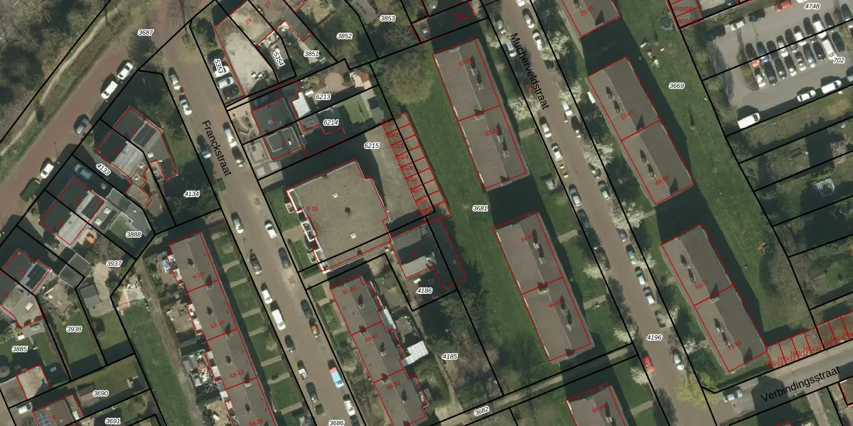 Het perceel waarop Franckstraat 5-G-9 staat heeft een oppervlakte van 837 m². Dit is een groot perceel. De perceeloppervlakte wordt geregistreerd door het Kadaster. Gedetailleerde informatie over de maten van dit perceel kunt u vinden in het rapport Kadastrale kaart met maatvoering van Franckstraat 5-G-9.
