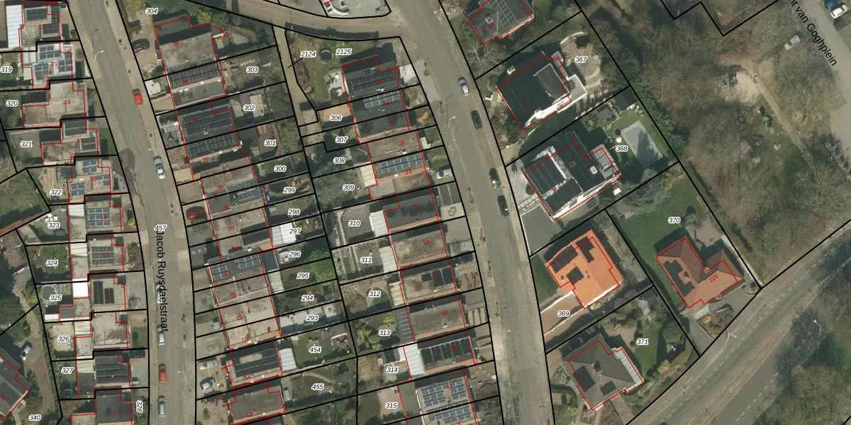 Gebruik de zoekbalk of klik op een perceel voor informatie over de adressen binnen dit perceel.