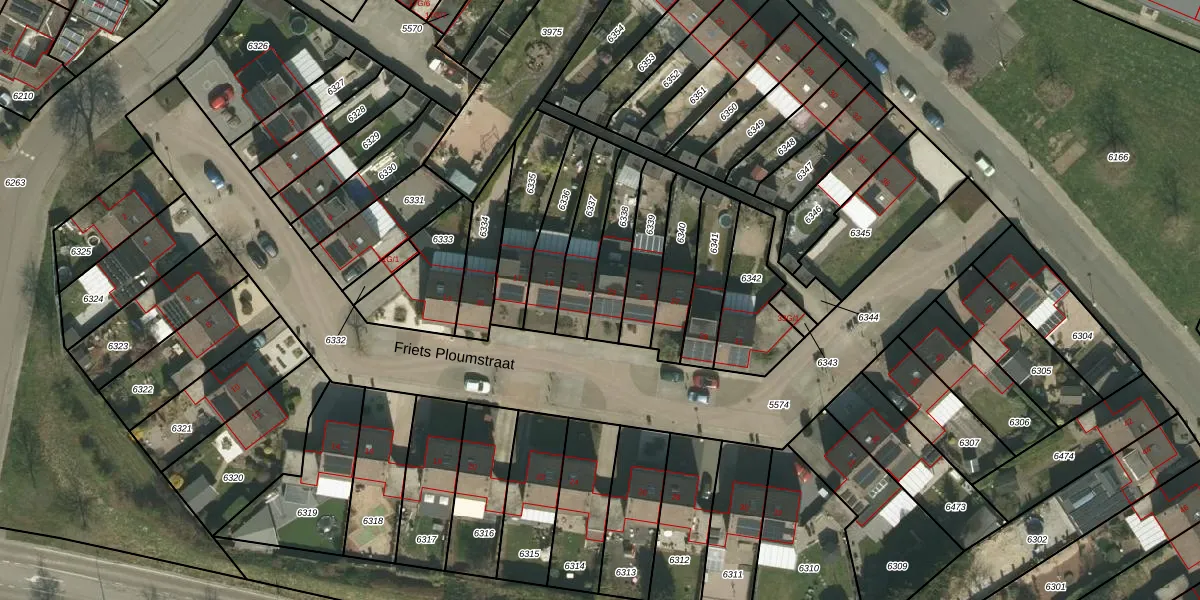 Friets Ploumstraat 23 is gelegen op kadastraal perceel KRD00E6338. Deze kadastrale aanduiding is uniek en wordt gebruikt door het Kadaster om eigendomsrechten en andere zakelijke rechten vast te leggen. Het perceel maakt onderdeel uit van de kadastrale gemeente Kerkrade.