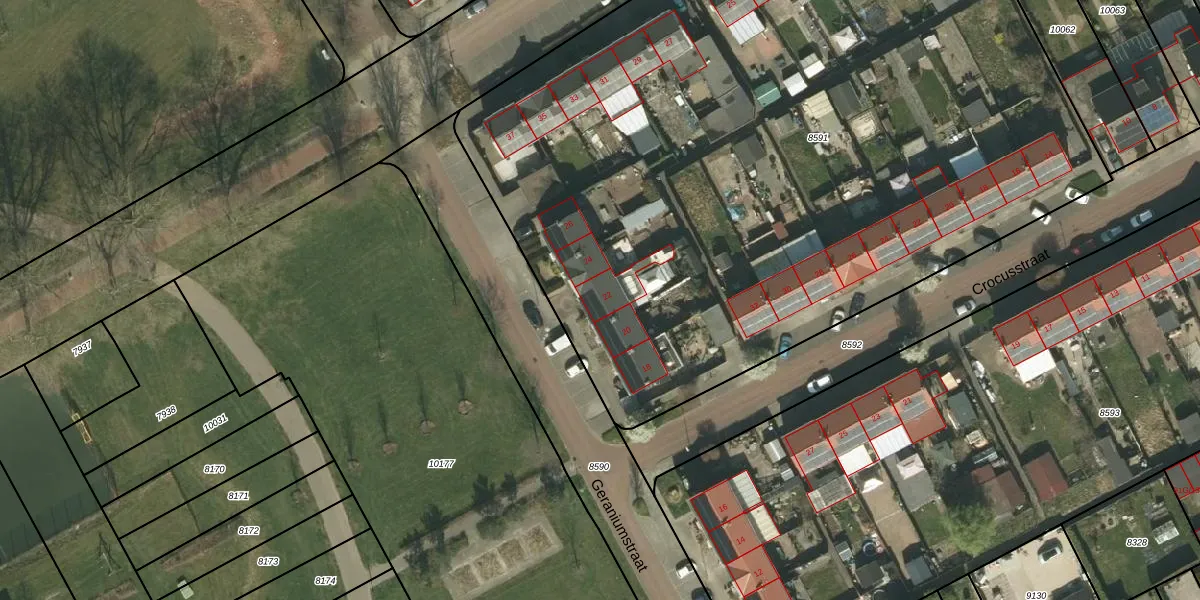 Het perceel waarop Geraniumstraat 22 staat heeft een oppervlakte van 7970 m². Dit is een zeer groot perceel. De perceeloppervlakte wordt geregistreerd door het Kadaster. Gedetailleerde informatie over de maten van dit perceel kunt u vinden in het rapport Kadastrale kaart met maatvoering van Geraniumstraat 22.