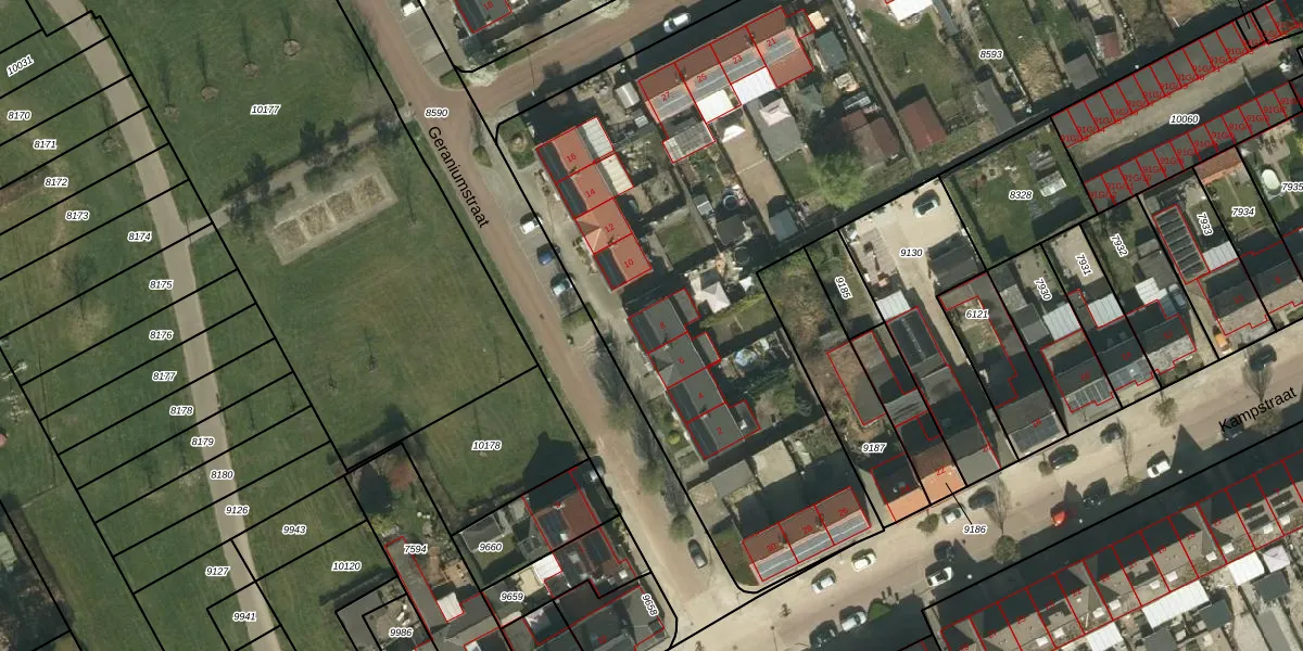 Geraniumstraat 8 is gelegen op kadastraal perceel KRD00D8593. Deze kadastrale aanduiding is uniek en wordt gebruikt door het Kadaster om eigendomsrechten en andere zakelijke rechten vast te leggen. Het perceel maakt onderdeel uit van de kadastrale gemeente Kerkrade.