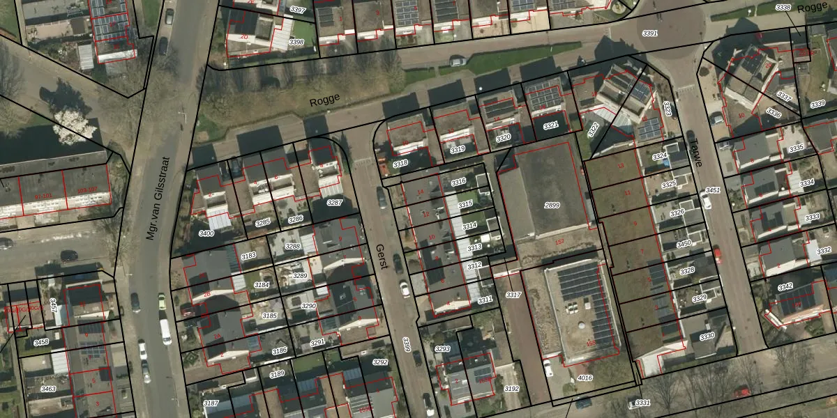Gerst 12 is gelegen op kadastraal perceel KRD00G3315. Deze kadastrale aanduiding is uniek en wordt gebruikt door het Kadaster om eigendomsrechten en andere zakelijke rechten vast te leggen. Het perceel maakt onderdeel uit van de kadastrale gemeente Kerkrade.