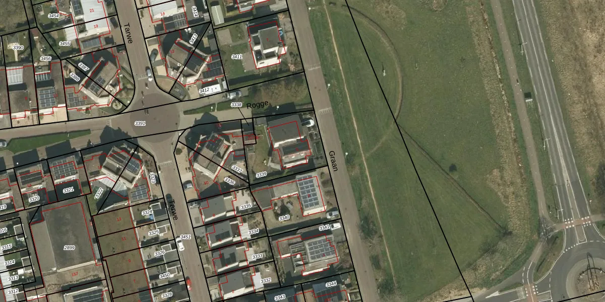 Het perceel waarop Graan 5 staat heeft een oppervlakte van 490 m². Dit is een groot perceel. De perceeloppervlakte wordt geregistreerd door het Kadaster. Gedetailleerde informatie over de maten van dit perceel kunt u vinden in het rapport Kadastrale kaart met maatvoering van Graan 5.