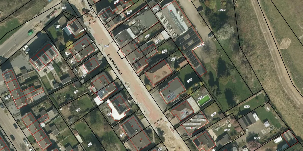 Het perceel waarop Grachterstraat 19 staat heeft een oppervlakte van 377 m². Dit is een groot perceel. De perceeloppervlakte wordt geregistreerd door het Kadaster. Gedetailleerde informatie over de maten van dit perceel kunt u vinden in het rapport Kadastrale kaart met maatvoering van Grachterstraat 19.