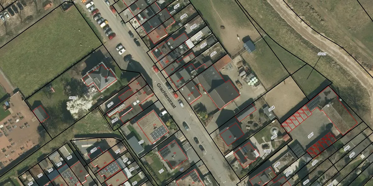 Het perceel waarop Grachterstraat 91 staat heeft een oppervlakte van 3665 m². Dit is een zeer groot perceel. De perceeloppervlakte wordt geregistreerd door het Kadaster. Gedetailleerde informatie over de maten van dit perceel kunt u vinden in het rapport Kadastrale kaart met maatvoering van Grachterstraat 91.