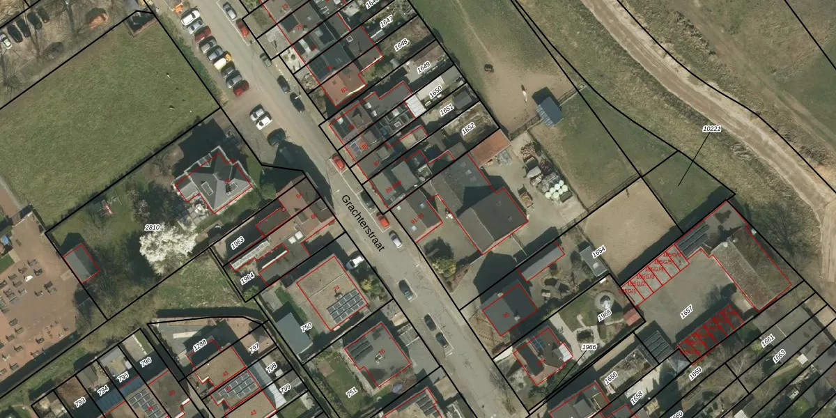 Het perceel waarop Grachterstraat 93 staat heeft een oppervlakte van 3665 m². Dit is een zeer groot perceel. De perceeloppervlakte wordt geregistreerd door het Kadaster. Gedetailleerde informatie over de maten van dit perceel kunt u vinden in het rapport Kadastrale kaart met maatvoering van Grachterstraat 93.