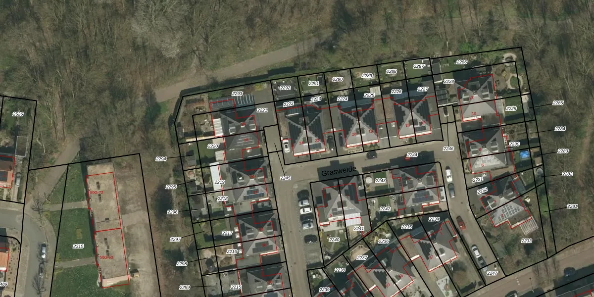 Grasweide 24 is gelegen op kadastraal perceel KRD00H2222. Deze kadastrale aanduiding is uniek en wordt gebruikt door het Kadaster om eigendomsrechten en andere zakelijke rechten vast te leggen. Het perceel maakt onderdeel uit van de kadastrale gemeente Kerkrade.