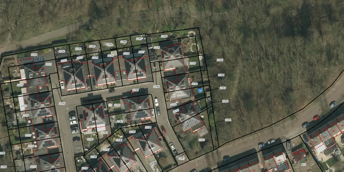 Grasweide 8 is gelegen op kadastraal perceel KRD00H2230. Deze kadastrale aanduiding is uniek en wordt gebruikt door het Kadaster om eigendomsrechten en andere zakelijke rechten vast te leggen. Het perceel maakt onderdeel uit van de kadastrale gemeente Kerkrade.