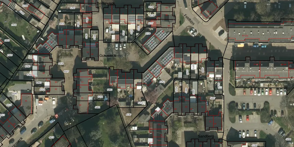 Het perceel waarop Grauweck 5 staat heeft een oppervlakte van 1594 m². Dit is een zeer groot perceel. De perceeloppervlakte wordt geregistreerd door het Kadaster. Gedetailleerde informatie over de maten van dit perceel kunt u vinden in het rapport Kadastrale kaart met maatvoering van Grauweck 5.