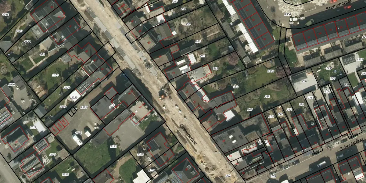 Het perceel waarop Graverstraat 74 staat heeft een oppervlakte van 437 m². Dit is een groot perceel. De perceeloppervlakte wordt geregistreerd door het Kadaster. Gedetailleerde informatie over de maten van dit perceel kunt u vinden in het rapport Kadastrale kaart met maatvoering van Graverstraat 74.