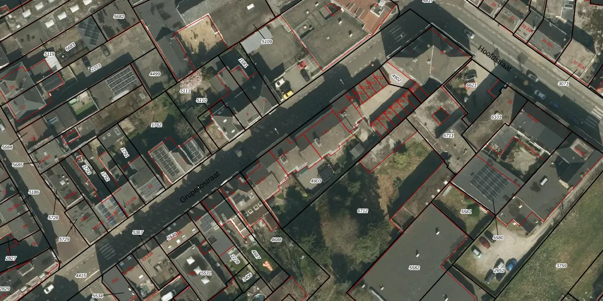 Het perceel waarop Grupellostraat 17 staat heeft een oppervlakte van 1266 m². Dit is een zeer groot perceel. De perceeloppervlakte wordt geregistreerd door het Kadaster. Gedetailleerde informatie over de maten van dit perceel kunt u vinden in het rapport Kadastrale kaart met maatvoering van Grupellostraat 17.